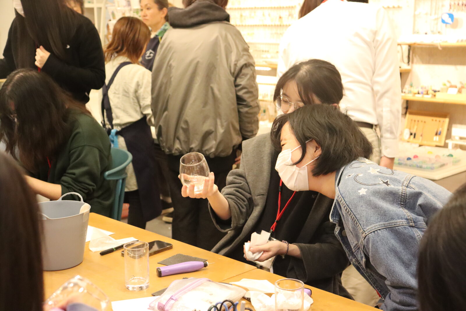 The group then participated in a glass etching experience. Using a tool called a Leutor, they engraved their favorite designs onto the glass surface. Students seriously focused on carving characters from their favorite anime or various letters. They showed each other their work in progress and finished pieces, making the activity a wonderful memento of the trip.